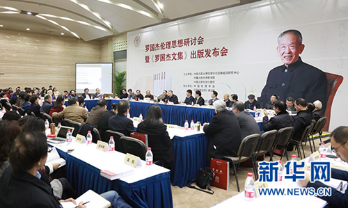 19日,由中国人民大学伦理学与道德建设研究中心、中国人民大学哲学院、中国人民大学出版社主办,中国伦理学会、《道德与文明》杂志社协办的罗国杰教授思想研讨暨《罗国杰文集》出版发布会在中国人民大学世纪馆北大厅举行,来自全国各地的百余名各界代表共聚一堂,缅怀罗国杰教授的崇高道德风范和精神品格,学习、探讨和阐扬罗国杰教授的伦理思想与道德建设理论。