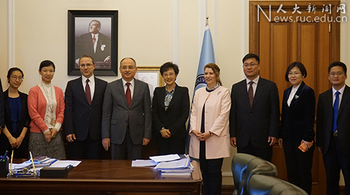 4月17-21日,中国人民大学党委书记靳诺率团访问土耳其,参加人民大学与土耳其加齐大学共建的“中国馆”揭牌仪式,刘延东副总理为“中国馆”揭牌,该馆为中土合作建立的首个“中国馆”。 中国人民大学出版社社长李永强、国际交流处处长张晓京、学校办公室副主任乔鹏等陪同出访。访问期间,人大出版社与土耳其新生出版社、土耳其环球时代传播集团公司签署了合作协议。